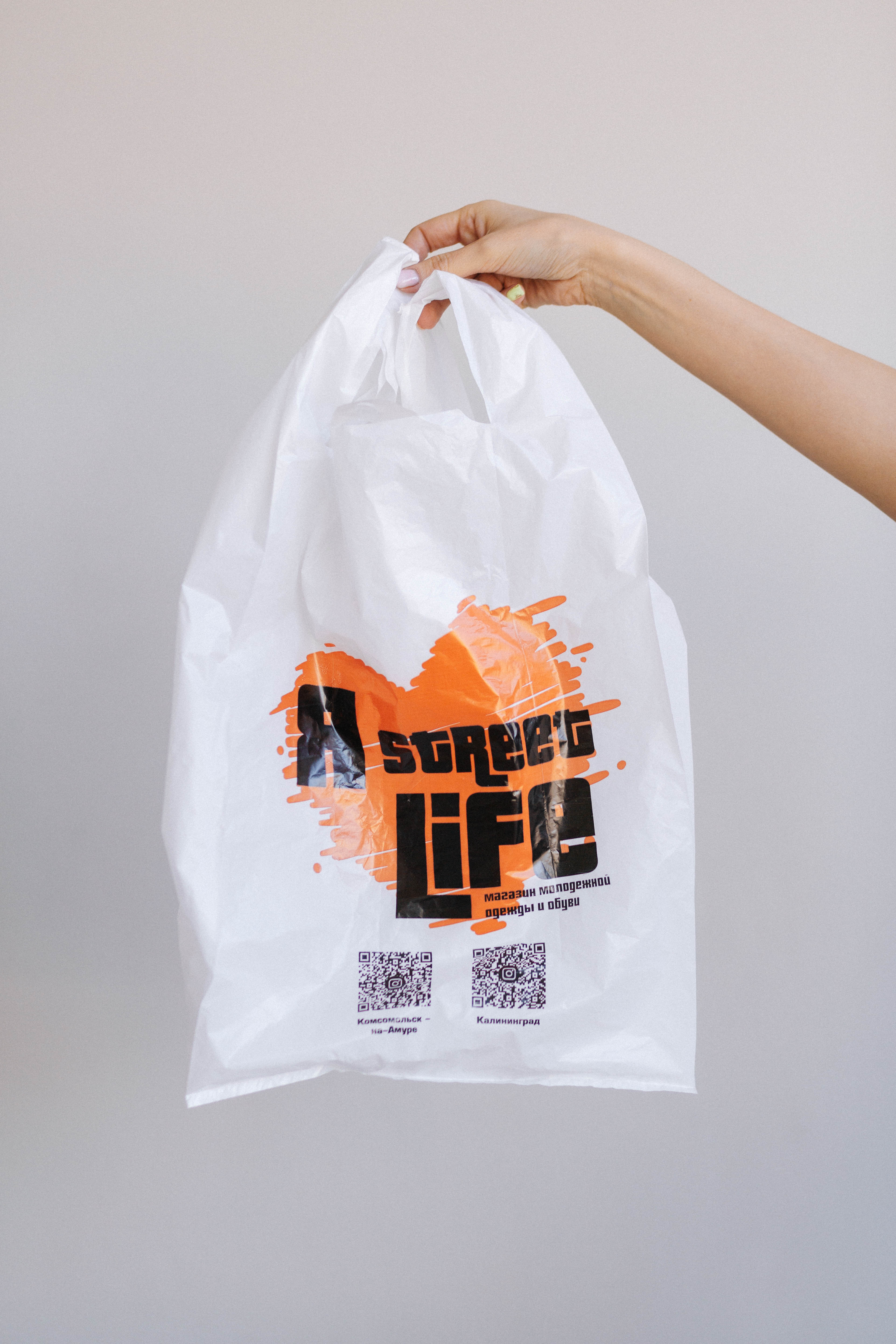 Печать логотипов на пакетах с прорубной ручкой для любых потребительских товаров: одежды, автохимии, лекарств, канцелярии и т.д.